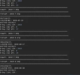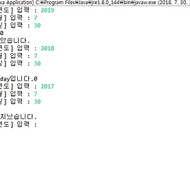 wrapper package kh.java.test; public class Exam {public void main() {String data = "999"; //문자열 999int num = Integer.parseInt(data);//정수형태로 변환해서 num이라는곳에 넣은것이다.System.out.println(num);System.out.println(num+1);//정상적으로 정수형태로 변했다. int num1=999;String date = Integer.valueOf(num1).toString();String date1 = String.valueOf(num);//위아래 같은것이다.System.out.println(date);//1을 더할경우문자열로인식되어뒤에1이붙는다.System.out.println(d.. 더보기 날짜수 계산 더하기 까지 Scanner sc = new Scanner(System.in);Calendar dday=Calendar.getInstance();Calendar today = Calendar.getInstance(); while(true) {System.out.println("종규가만든 디데이계산기");System.out.print("D-Day [년도] 입력 : ");int year=sc.nextInt();System.out.print("D-Day [월] 입력 : ");int month=sc.nextInt();System.out.print("D-Day [일] 입력 : ");int day=sc.nextInt(); dday.set(year,month-1,day); System.out.println("============.. 더보기 API 실습 public void main6() {//D-Day [년도] 입력 : //D-Day [월//일//오늘날짜//D-day날짜//지났다.//D-day입니다.//몇일 남았는지//hint getTimeInMillis(); 쓰기 세계 시간 기준은 1970년1월1일0시0분0초0ms이다.//우리나라 기준은 9시간 후이다.//hint getTimeInMillis(); 쓰기Scanner sc = new Scanner(System.in);Calendar dday=Calendar.getInstance();Calendar today = Calendar.getInstance(); while(true) {System.out.print("D-Day [년도] 입력 : ");int year=sc.nextInt();System.out.p.. 더보기 이전 1 ··· 50 51 52 53 54 55 56 ··· 70 다음